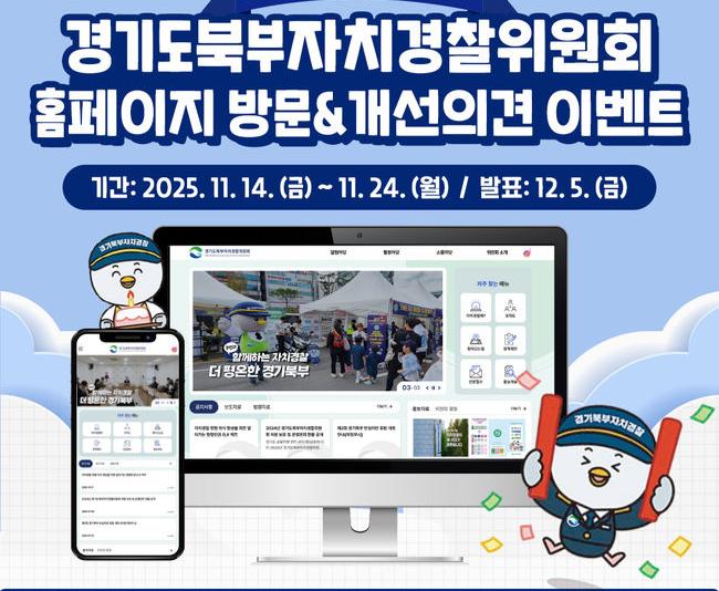 경기도북부자치경찰위원회 누리집 전면 개편…모바일 편의·도민 소통 강화 - 사진·그래픽 중심의 직관적 디자인으로 정보 접근성 개선 - 11월 14~24일 온라인 이벤트…의견 제출 참여자 100명에 경품 제공