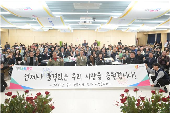 2025년 중구 전통시장 성과 비전공유회.서울 중구(구청장 김길성)는 2일 중구청 대강당에서 ‘2025년 전통시장 성과·비전공유회’를 개최하고 전통시장 활성화 사업의 성과와 2026년 미래 비전을 상인과 주민 100여 명과 공유했다.