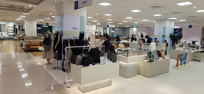 현대백화점 미아점이 성북구사회적경제센터와 협력해 사회적경제기업과 소상공인의 제품을 판매하는 특별기획전 `로컬상회` 모습.