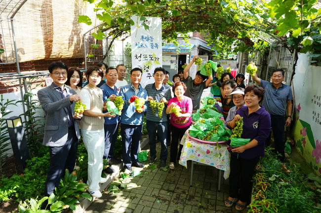 서울 성북구 종암동주민자치회가 청포도 수확 및 나눔 행사를 열어 직접 가꾼 청포도를 경로당 어르신들에게 전달하며 지역공동체의 정을 나눴다.