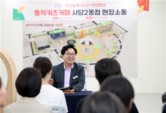 지난 7월 동작키즈카페, 박일하 동작구청장이 학부모들과 소통하고 있다.