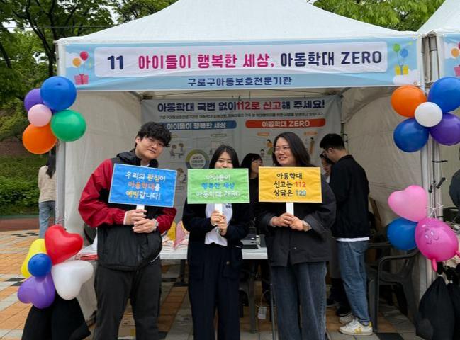 제103회 어린이날 종합행사에서 구로구 아동청소년과 직원들이 아동학대 예방 홍보부스를 운영하며 인식 개선 캠페인을 진행하고 있다.