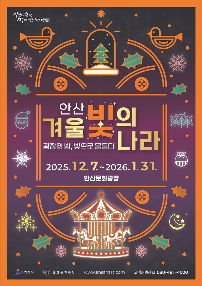 시는 안산문화광장 내 `물의 광장`부터 `갤러리 광장`에 이르기까지 약 1km 구간을 빛 조형물과 다채로운 포토존으로 구성, 시민들에게 잊지 못할 겨울 추억을 선사한다.