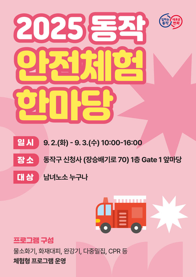 동작구, ‘동작 안전체험 한마당’ 개최…생활 속 위급상황 체험 - 화재·인파 밀집 등 실제 상황 재현…신속 대처법 교육 - QCPR 활용 심폐소생술 등 보건안전 체험 프로그램 운영 - 소화패치·방연마스크 등 교보재 제공…유관기관 협력 강화