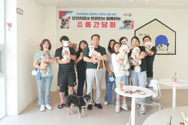 오산시, 반려인과 직접 소통 간담회 개최.지난 8월 30일 반려동물테마파크 애견동반카페에서 열린 이번 간담회에는 이권재 오산시장과 반려인 18팀이 참석했다. 시는 현재 추진 중인 반려동물 정책을 공유하고, 참석자들은 반려동물 양육 과정에서 겪는 불편과 개선 요구를 솔직하게 제시했다.