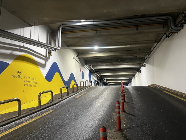 용산구는 이 공간을 단순히 `밝히는` 데 그치지 않고, 보행자의 인식과 감정에 작용하는 통로로 재구성했다. 숙명여자대학교의 상징 색상인 로열블루를 주조색으로 적용하고, 노란색을 포인트 컬러로 활용해 시인성과 공간 활력을 높였다. 색채 대비를 통해 보행자의 시선을 자연스럽게 유도하고, 지하차도 특유의 심리적 불안을 완화하는 데 중점을 뒀다.